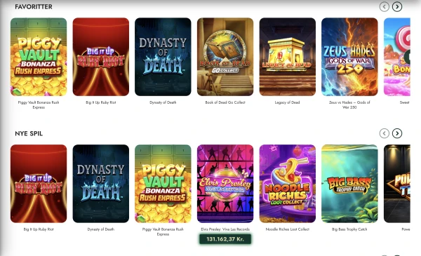 For de fleste spillere er den største fordel ved mobil bekvemmelighed frem for anderledes indhold. Du kan stadig få adgang til spilleautomater, live casino, kontogrænser og betalingsmetoder i DKK fra ét sted. Søgning og spilfiltre er særligt nyttige på mindre skærme. Der er ingen større indholdsforskelle angivet mellem desktop og mobil, selvom den enkelte spilydelse kan variere efter titel og enhed.