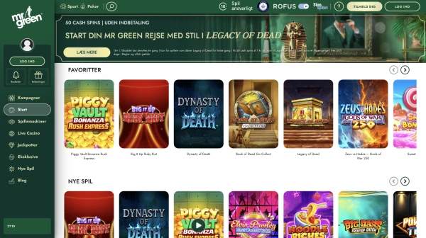Det, der får os til at skille os ud, er ikke én enkelt funktion, men hvordan det hele spiller sammen. Vi understøtter MobilePay, Trustly, kort, e-wallets og vouchers til øjeblikkelige indbetalinger. Vi tilbyder en velkomstpakke med 100% match op til 1.000 DKK samt 50 Cash Spins uden indbetaling. Vi tilbyder også live chat, adgang på iOS og Android samt sikkerhedstjek af kontoen, der beskytter både ind- og udbetalinger. For spillere, der sammenligner muligheder, holder MrGreen Casino de vigtigste detaljer synlige og praktiske.