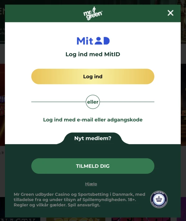 MrGreen log ind og hjælp til gendannelse